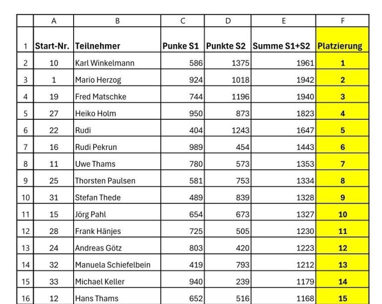 - Platz 2: Silber ging an Mario Herzog, der mit 29 Butt (871 cm) eine starke Serie hinlegte.
